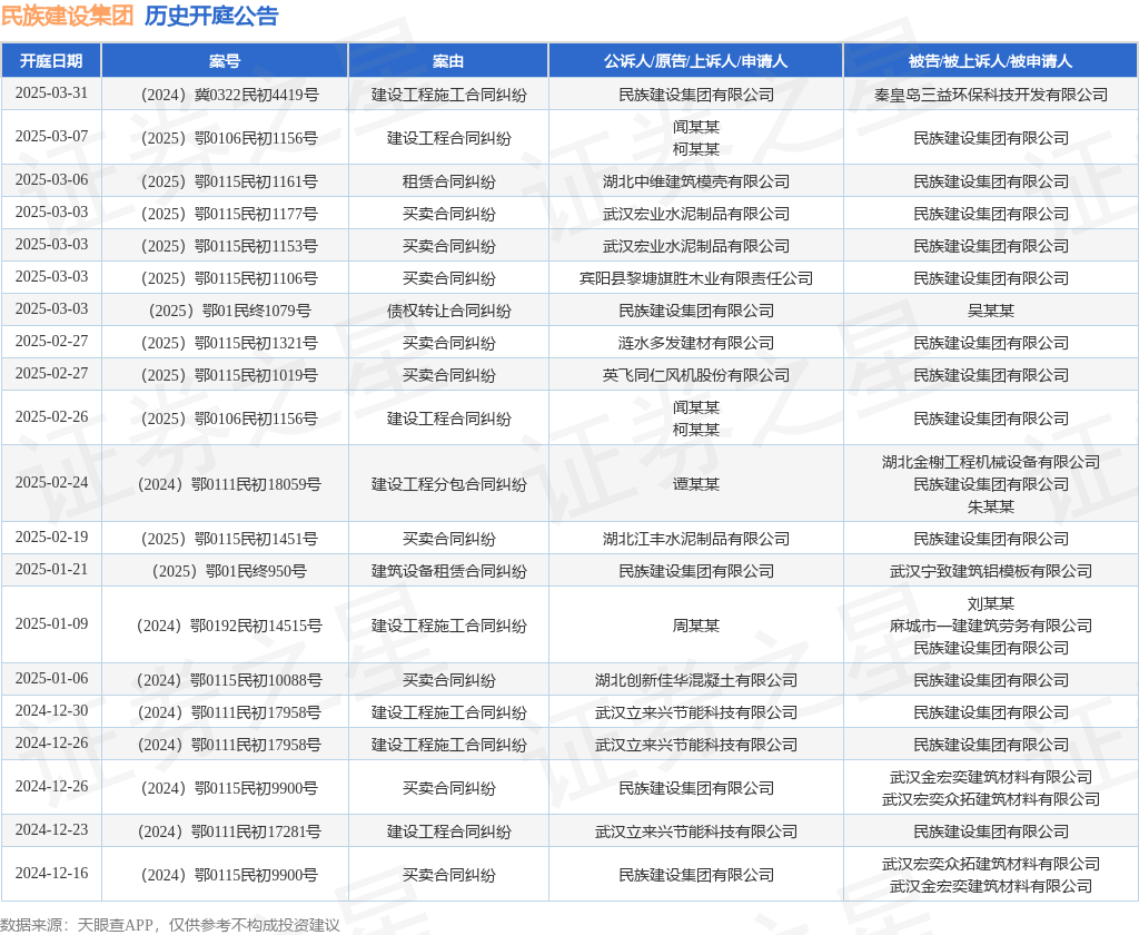 本站消息,根据天眼查APP显示,近日公布了一则民族建设集团有限公司作为被告/被上诉人的开庭公告,详细内容如下: